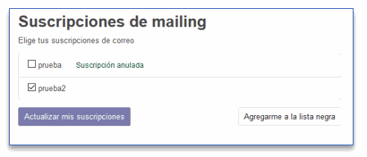 Al realizar la suscripción, la cuenta de correo electrónico quedará vinculada a la lista de correo que corresponda.