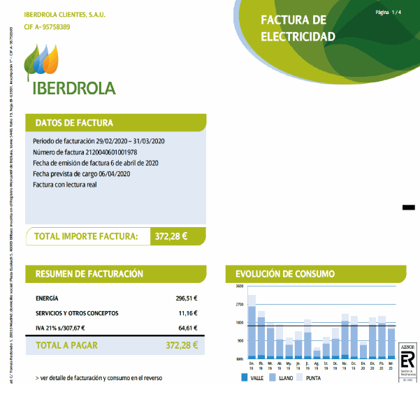 A continuación una imagen de la factura que vamos a contabilizar: