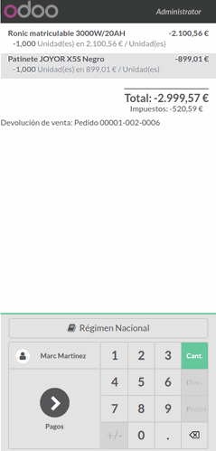 Para aquellos usuarios que disponen de una tienda física, y tienen en ella instalado un TPV, todos sabemos que hay ocasiones en que el cliente quiere devolvernos o cambiarnos algo, sea por el motivo que sea. La posibilidad que da inicialmente Odoo para solucionarlo, se trata de volver a marcar el producto a devolver e indicar el precio en negativo, de forma que hacemos un abono. Pero esto en cuanto tengamos un carro entero de productos a devolver puede ser más incómodo.