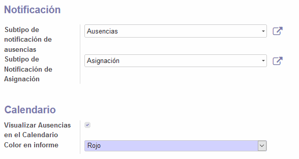 Indicar el tipo de notificación que se genera para los usuarios de Odoo, tanto para ausencias como asignaciones.