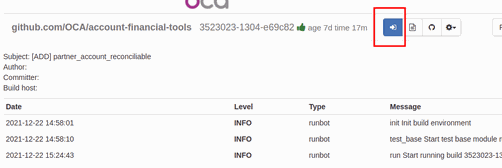 Para poder acceder al Runbot en cuestión, es necesario seleccionar un icono similar a una puerta. Este icono destaca por su color azul. Además, no nos aparecerá la opción Force Rebuild.