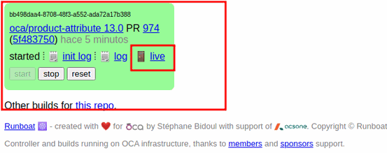 Si quieres saber cómo funciona Runbot de Odoo estándar, puedes obtener más información en esta entrada de blog.