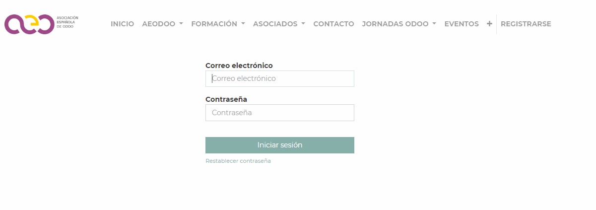 Si no tenéis habilitado vuestro usuario portal será necesario que solicitéis el mismo mediante el correo hola@aeodoo.org o rellenando el formulario de contacto de nuestra web.